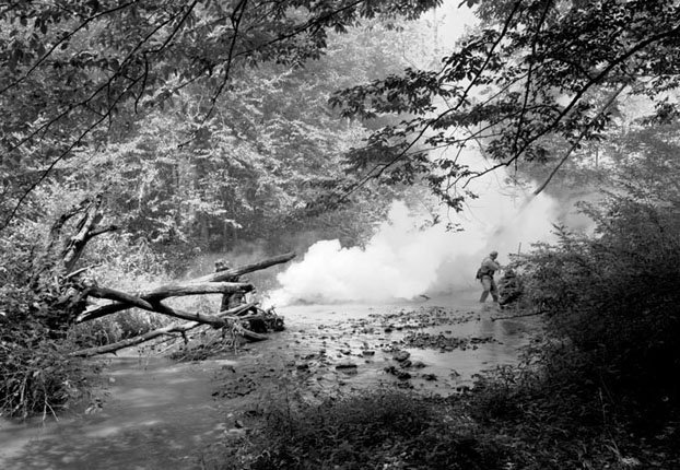 His use of three old book texts and their pages in the 2014 film work also invites philosophical discussion. The pages of the Oxford English Dictionary provide one support. The second (above) is the Universal Technological Dictionary; and the final one is Richard Burton’s Anatomy of Melancholy. Do the images and interspersed texts relate to anything specific in these works? Is the film printed on Burton’s old work, one of the first discussions of depression in English writing, to be interpreted as a meditation on the meaning of sadness and sorrow, or even as the product of a period of depressive illness? There is nothing to tell us and no way to know, and it is especially frustrating with the films as there is no way to slow them down and “read” them through a narrative grammar, even though one is implied by the very form of the work.