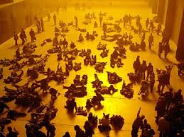 Impermanence, transience, and loss is reflected in the works themselves, which cannot be “collected” in any conventional sense. The vast installations are destroyed after exhibition. This highlights one of the most puzzling questions about artists like Boltanski. Their work is entirely conceptual. They do not “make” their art. All of their exhibits have to be constructed and managed by others. In what sense is the creator an “artist”? Can art be separated from the physical action of its creator? Does the contemporary, or perhaps it is post-modern, obsession with conceptual art and installation arise from an ethical insistence on the priority of idea over form and of collective effort above private individual labour?